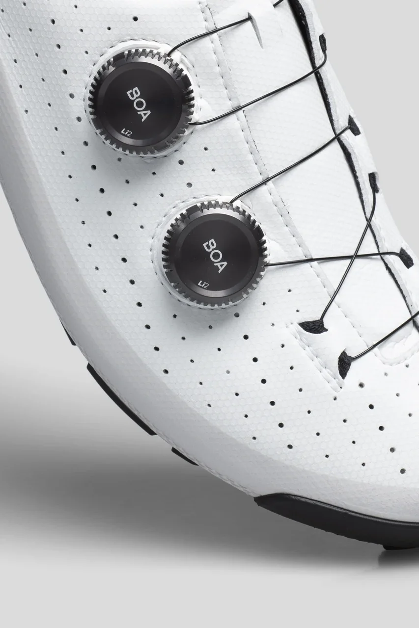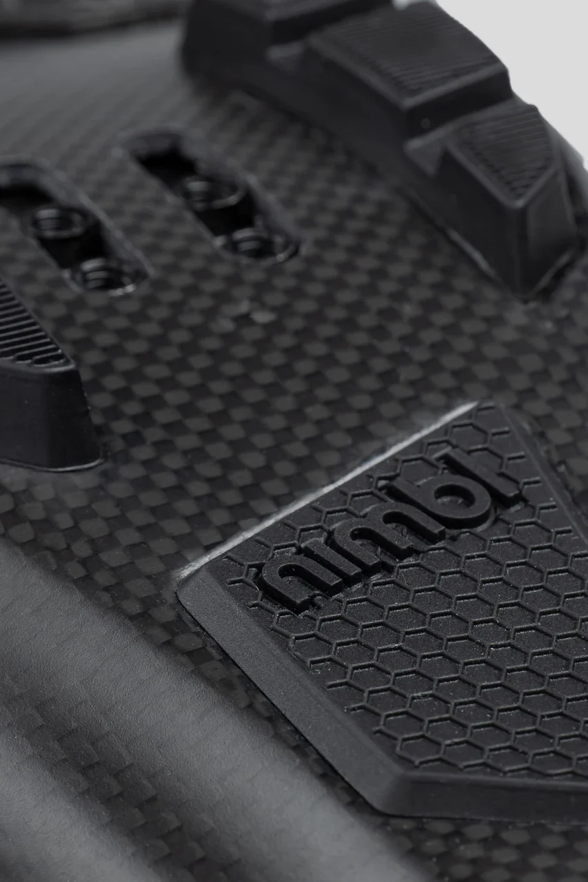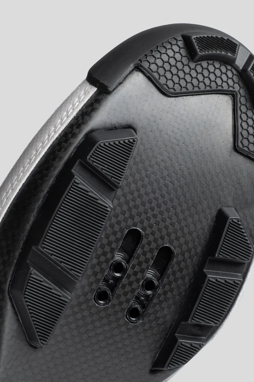 Urano is the first Nimbl shoe, performance-oriented and specifically designed for gravel. Its racing soul embodies the traditional values of the brand while paving a new path towards unexplored heights. Lightness and durability combined with the carbon monocoque sole enhance the connection between cyclist and bike, making the shoe fast on all terrains.